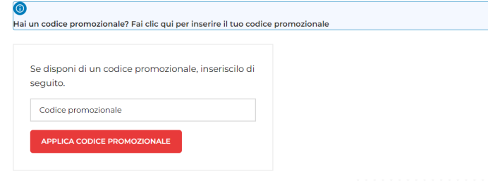 Poi fai clic su codice promozionale, e inserisci il nostro codice coupon, alla fine clicca APPLICA CODICE PROMOZIONALE per ottenere lo sconto!